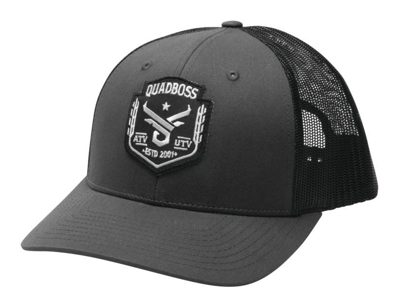 The QuadBoss Barbwire Snapback Hat features a low-profile, trucker-style fit for those who want a classic look with a more tailored fit.