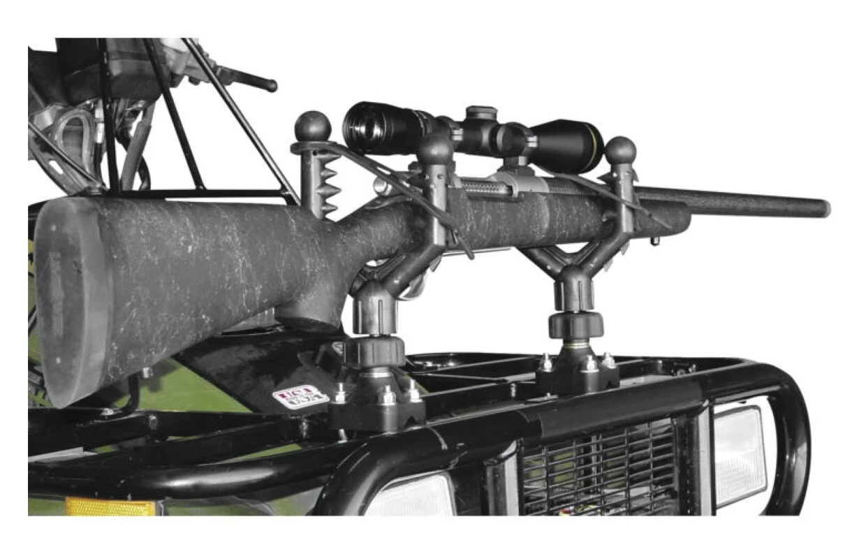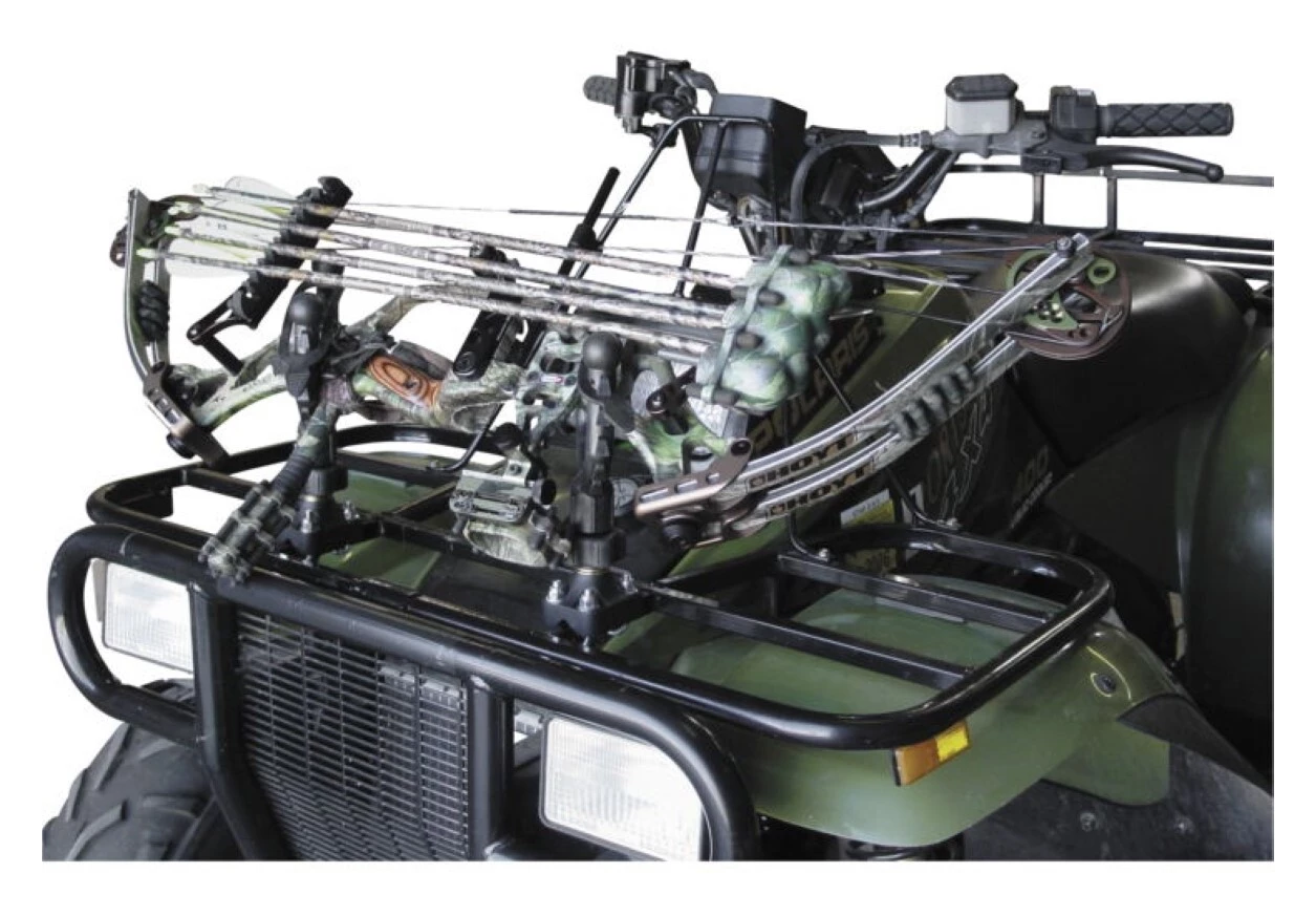 The Quad Boss Cushioned Rifle and Bow Rack mounts to virtually any machine and uses pockets of air in the fork design to provide superior vibration isolation. The tough yet flexible design clamps to cargo racks, frame rails and tubing 1/2″ to 1″ in diameter and also attaches to flat surfaces. The unit features a heavy-duty steel core to hold rifles, bows, fishing rods, shovels and other gear and tools with ease.