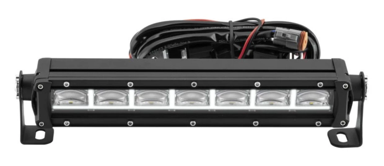 DRL Light Bars from QuadBoss add a daytime running light feature to the combination beam pattern that enthusiasts expect from QuadBoss high performance LED light bars. DRL Light Bars feature unique zero glare “half surface” optics and a secondary daytime setting that illuminates the bar in white for conspicuity. The standard combination beam pattern pairs flood and spot beam LEDs to cover both nearby trail obstacles and far off turns and twists. These performance luminators are housed in a low profile, heavy-duty aluminum casing with scratch- and shatter-resistant lenses. An IP68 rating ensures resistance against water.Â
