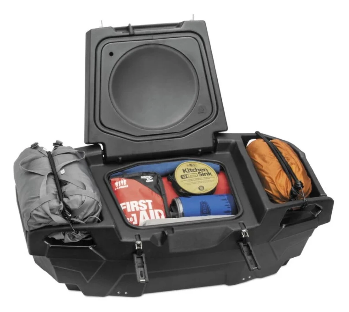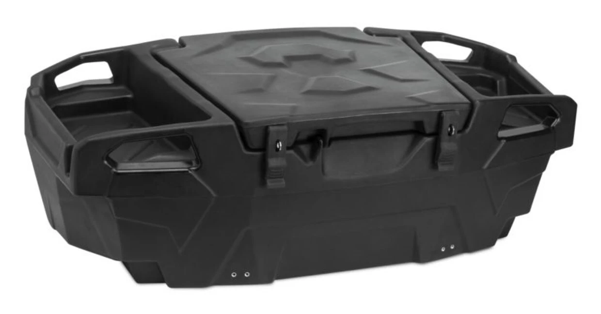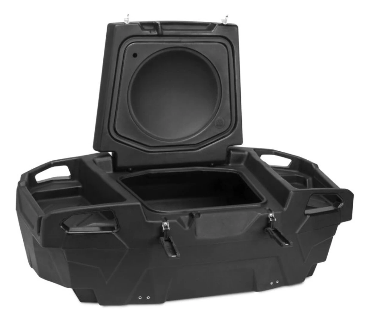 The Expedition Series UTV Cargo Box fits the rear cargo area of most UTVs and can attach to cargo racks on full-size ATVs. The Expedition Series Box sports a convenient lid that opens a full 110° for easy access to gear. The rugged rotomolded construction is sealed from the weather with a gasket at the lid. Further gear can be tethered to the exterior carry handles, and rubber latches keep the box’s cargo secure – which are compatible with padlocks.Â