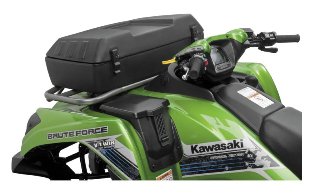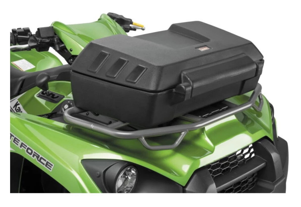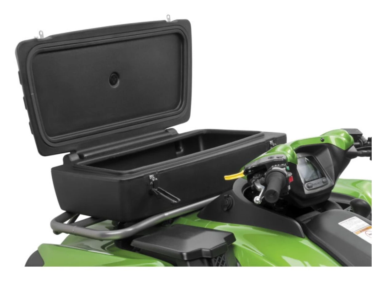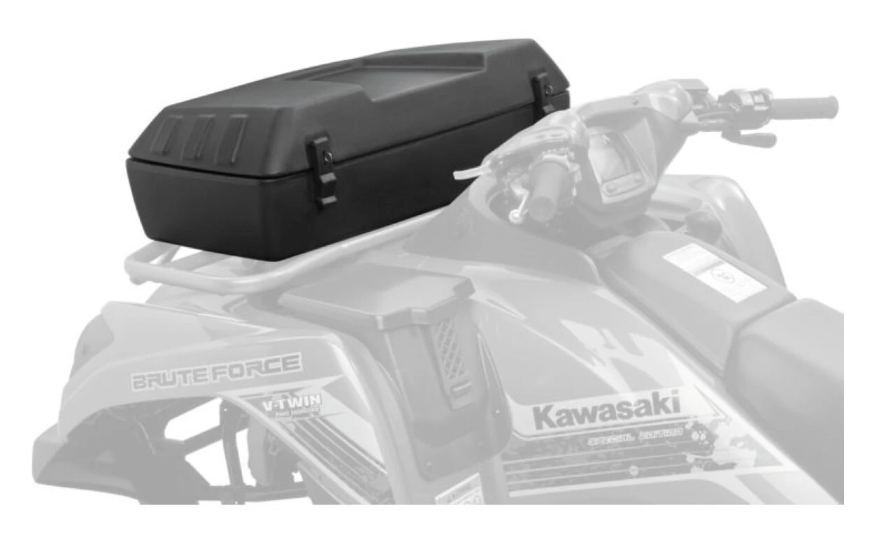 The Quad Boss Front Storage Box packs a lot of gear and keeps it within easy reach across the front of your quad. Universal mounting hardware is included that interfaces easily with most ATVs. The double wall lid provides extra rigidity, and a weather-resistant gasket around the box’s lid keeps out Mother Nature. Two lockable latches keep the box secure, but locks themselves are not included.Â