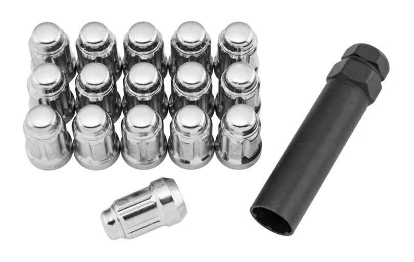 Splined Lug Nuts offer a smaller outside diameter than traditional nuts which can be the perfect solution for low clearance applications and tuner style wheels.