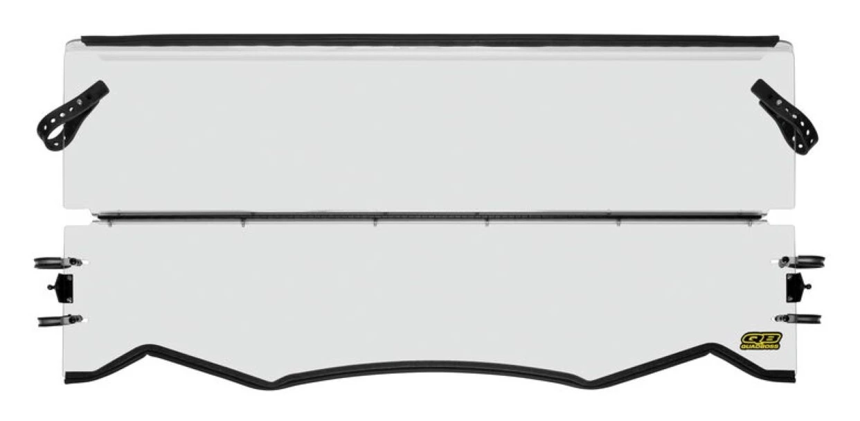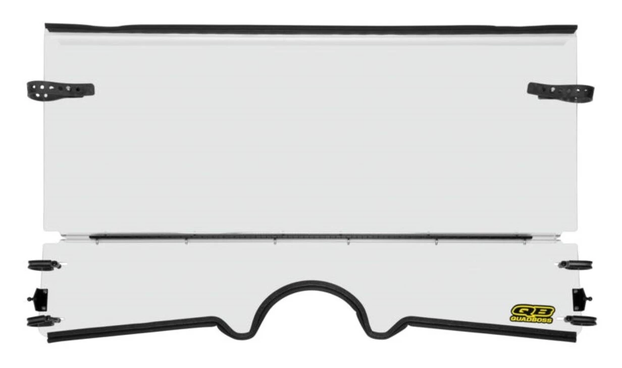 The QuadBoss UTV Folding Windshields mount to the lower portion of your UTV’s cab and use thick 0.177″ polycarbonate resin for excellent optical clarity and toughness. Upper and lower panels can be folded up or down independently when not fully deployed for ventilation. Following installation, operation is quick and tool-less. These model-specific units are contoured for a flush, factory tight fitment that reduces unwanted wind noise and intrusion. Mounting hardware is stainless steel with a rubber coating to isolate vibration and protect painted mounting surfaces.