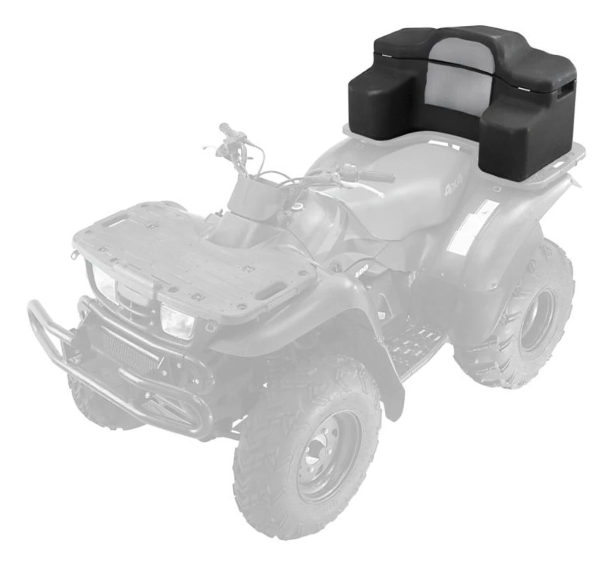 The Wrap Rear Trunk from Quad Boss is a universal fit storage box for the rear rack of your ATV. The wrap-around design features a foam backrest, so the rider can lean back and relax at the end of a ride. Molded carrying handles allow for easy installation and removal. A tongue-and-groove lid system provides a weather-resistant seal for the rotomolded body. Universal fit mounting hardware is included.Â
